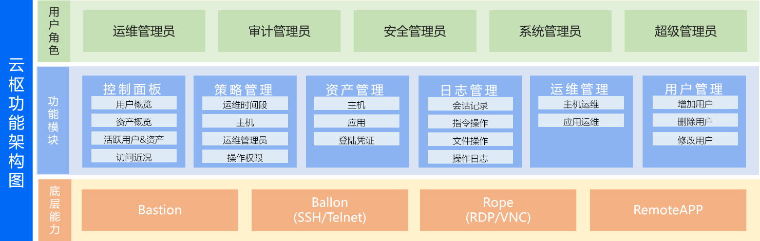 ????????基于數據中心運維安全管理角度出發,通過集中化運維管控、統一運維管理、身份認證與權限控制、運維訪問合規性控制、運維過程實時監看、運維過程全程審計、自定義應用發布等功能,為數據中心運維構建一套完善的事前預防、事中監控、事后審計的安全管理體系。