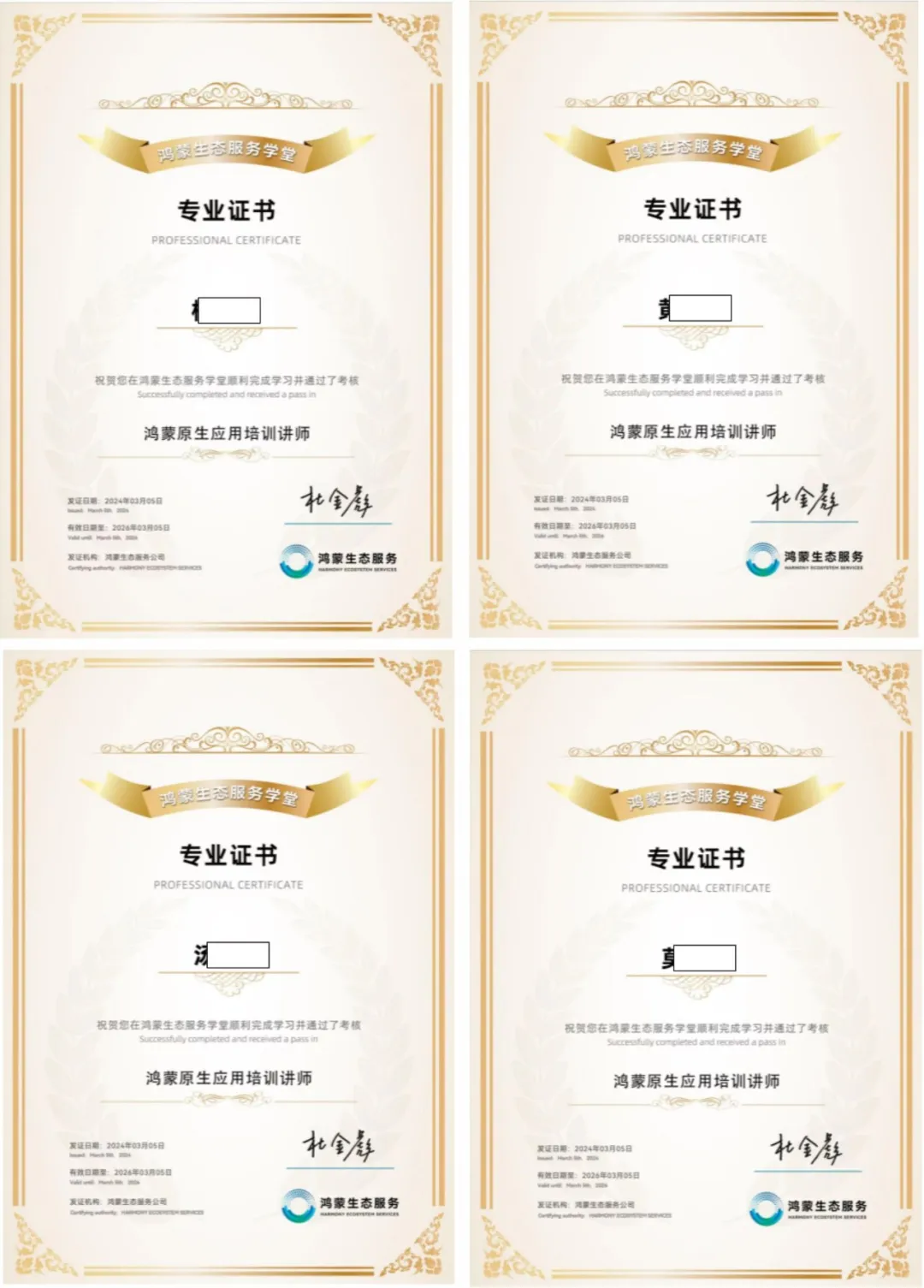 首批通過“鴻蒙原生應用培訓講師”認證的講師證書