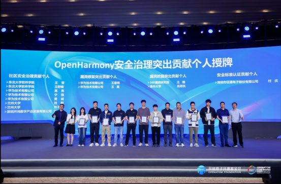 伴隨“春筍行動(dòng)”啟動(dòng)的熱潮,證通還主辦了的OpenHarmony外設(shè)生態(tài)閉門(mén)會(huì)議,聚焦OpenHarmony外設(shè)SIG技術(shù)發(fā)展規(guī)劃、OpenHarmony外設(shè)工作組發(fā)展規(guī)劃、OpenHarmony外設(shè)認(rèn)證工作進(jìn)展及規(guī)劃等方面發(fā)表了主旨分享,深度剖析了OpenHarmony在外設(shè)生態(tài)技術(shù)演進(jìn)路徑和發(fā)展規(guī)劃。在交流討論環(huán)節(jié)就如何加強(qiáng)生態(tài)合作和如何加速推動(dòng)OpenHarmony外設(shè)應(yīng)用的創(chuàng)新與落地等議題進(jìn)行了深入討論,為外設(shè)生態(tài)的未來(lái)發(fā)展繪制了宏偉藍(lán)圖。OpenHarmony外設(shè)生態(tài)閉門(mén)會(huì)議在本次大會(huì)上,證通憑借著在開(kāi)源技術(shù)創(chuàng)新與生態(tài)貢獻(xiàn)上的杰出表現(xiàn),榮獲“OpenHarmony外設(shè)生態(tài)先鋒單位”、“2024OpenHarmony社區(qū)安全標(biāo)準(zhǔn)認(rèn)證貢獻(xiàn)團(tuán)隊(duì)”、其中證開(kāi)鴻副總經(jīng)理付慶獲得“2024OpenHarmony社區(qū)安全標(biāo)準(zhǔn)認(rèn)證貢獻(xiàn)個(gè)人”,這些榮譽(yù)不僅是對(duì)證通這一年來(lái)深耕OpenHarmony生態(tài)所取得成績(jī)的認(rèn)可,也彰顯了其在全球開(kāi)源領(lǐng)域的重要地位和深遠(yuǎn)影響,更為其未來(lái)的發(fā)展之路增添了更多期待與動(dòng)力。隨著2024開(kāi)放原子開(kāi)源生態(tài)大會(huì)的圓滿落幕,證通以實(shí)際行動(dòng)證明了其在開(kāi)源技術(shù)與OpenHarmony生態(tài)建設(shè)中的領(lǐng)先地位。展望未來(lái),證通將繼續(xù)秉承開(kāi)放共享、合作共贏的理念,攜手合作伙伴,共同開(kāi)啟數(shù)字中國(guó)的輝煌篇章。